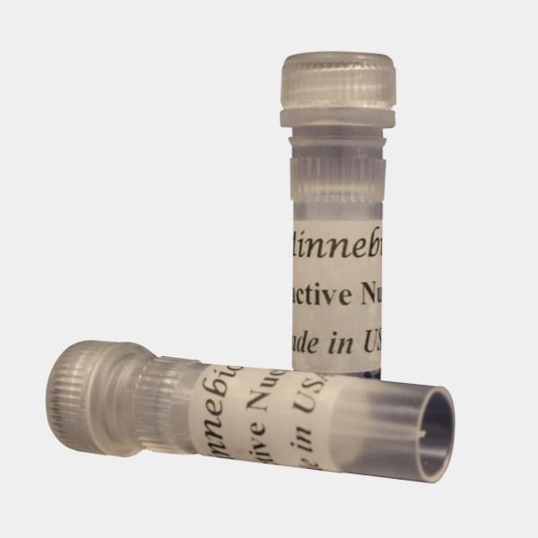 在凍干粉的小瓶中加入去離子水,使溶液濃度達(dá)到0.2 kU to 1 kU/μL之間。用微量移液管吸取溶液并用移液管槍頭貼著管壁緩慢釋放, 沖洗粘附在在管壁上的核酸酶殘留物。如果溶液量足夠多,也可以蓋住瓶蓋, 輕輕晃動瓶子, 甚至顛倒小瓶幾次,最后用離心機使溶液聚集在瓶底。根據(jù)需要,可以用緩沖液進(jìn)一步稀釋。